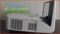 MX850UST機身白色,看起來干凈大方,環(huán)看周身,尾部豎起的板最為顯眼。板前有一面反光鏡用來反射鏡頭打出的光,其余部分為黑色,以避免光線的干擾;板背面印有BenQ的LOGO,字體倒過來的,可見MX850UST其實是一款專門為吊裝固定安裝的機型。機身兩側為網狀透氣結構,其中左側是出風口,在工作的時候排除產生的熱量。前端為接口區(qū)域,在吊裝時,前端離墻最近,因此,接口區(qū)設計在前端便于安裝。機身上面(吊裝時為下面)有一個按鍵區(qū),開關電源鍵、方向鍵、選項鍵以及節(jié)能鍵,設計整齊美觀。鏡頭同樣位于機身上面與面板交界處,鏡頭后端有一個調焦環(huán),便于調整教育,得到清晰的畫質。
