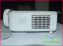 GX-570ST采用白色的外觀,體積小巧,拿起來很輕。包裝配有一個投影機包,出門時裝在包里,就可攜帶到任意地方。機身右前方以及左側都用通風口,內置過濾網,可拆下清潔。燈泡位于靠近右側部分,換燈泡時非常方便,只需把右上方開啟,將燈泡更換就可以了。機身下部有升降腳架,如果出現畫面高度需要調整,可任意調節高度,再通過梯形校正使畫面平整。