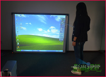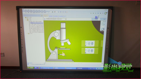 DB-91INS-Y01面板兩側(cè)分別有一列完全一樣的觸摸快捷鍵,把一些經(jīng)常使用的功能做到上面,比如說(shuō)屏幕校準(zhǔn)、前后翻頁(yè)、選擇三種顏色的筆、橡皮擦、清屏操作、打開(kāi)相關(guān)文件等。讓使用者無(wú)論是站在左側(cè)還是右側(cè),都能簡(jiǎn)單快捷的進(jìn)行操作,通過(guò)影尚視覺(jué)的測(cè)試,兩排觸摸快捷鍵都十分靈敏準(zhǔn)確,響應(yīng)速度也非常快。屏幕的最左下角邊框上有一個(gè)信號(hào)指示燈,在接通電源后燈處于紅色狀態(tài),在進(jìn)行操作時(shí)指示燈會(huì)顯示藍(lán)色來(lái)提示操作是否已經(jīng)進(jìn)行,我們通過(guò)指示燈的狀態(tài)就能準(zhǔn)確的分辨交互式白板的工作狀態(tài),
