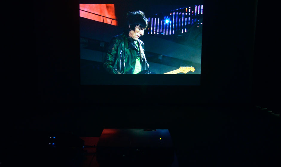 2D動態(tài)視頻——絢麗的舞臺燈光下,歌手的衣著及面部細(xì)節(jié)顯示依然不錯。(畫面大小150寸)
