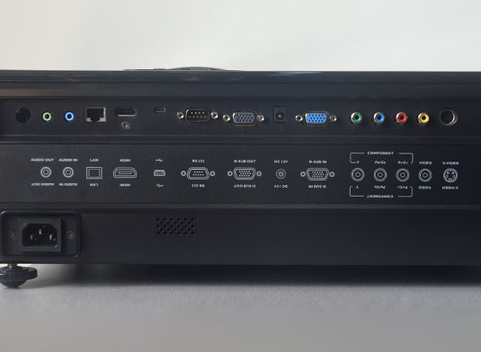 mm,足足的比普通商教投影大出2--3倍,不僅外形顯得十分霸氣,估計(jì)內(nèi)部也會(huì)十分有料;外形的增加自然帶來(lái)了重量上的增加,SH960的重量達(dá)到了13kg,雙手將其搬起來(lái)感覺(jué)到了明顯的份量,固定安裝使用的時(shí)候應(yīng)該能夠帶來(lái)更加出色的使用效果,而對(duì)于經(jīng)常需要更換投影位置的用戶,只要您不嫌搬運(yùn)這樣一個(gè)大塊頭的費(fèi)時(shí)費(fèi)力,也能算是比較便利的。