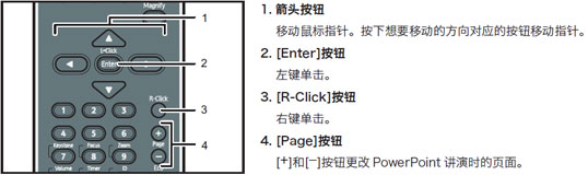 的設置菜單體驗也只能算是中規中矩,即沒有太多的創新,也沒有過多的詬病,能夠滿足日常的使用需求。其為用戶準備的鼠標遠程控制接收器還是比較有特色的一個配件,通過將鼠標遠程控制接收器連接到電腦,就能通過遙控器來控制電腦鼠標,你能做到遠程控制鼠標,如在演示PPT文件時,通過將遙控器便可遠程控制鼠標點擊翻頁,提高演示效果,也可用USB導線連接投影機和電腦,用遙控器操作電腦的鼠標功能,操作提示如下圖。