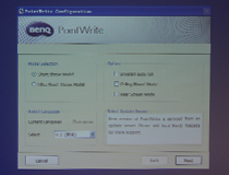之前的安裝過程十分的簡便,分分鐘之內就可以輕松搞定,USB的連接也十分便利,打開投影機并連接電腦之后,接下來就是軟件的安裝了。把配件中的安裝光盤放入光驅中,打開光盤驅動器之后就會彈出明基的軟件安裝界面,我們先后選擇了PointWrite校準軟件、Qwrite交互軟件與Qwrite