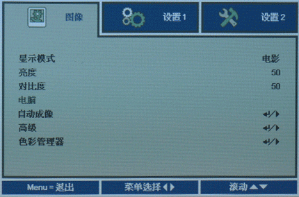 除了功能強大之外,良好的菜單操控體驗也是投影產品應該必備的剛需功能,我們可以說D912HD擁有著一套有好的菜單設計,也可以認為其只是草草的應付差事,因為這套我們再熟悉不過的菜單在這次的亮相中并沒有太大的改變:圖像、設置1、設置2共三個主菜單,包含著眾多的分菜單設計,從分菜單中我們能夠實現我們能夠想到的幾乎所有的功能等等這些,我們已經體驗過很多遍了,這里我們就不再羅嗦的描述了,對其有興趣的用戶可以翻開我們之前的麗訊體驗文章觀看一下。