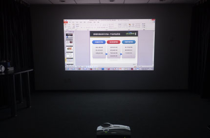 從設計之處D912HD就瞄準了用戶量龐大的高端商務投影領域,而其多項指標與參數的設計都十分貼近高端商務投影產品的指標,得益于兼顧家用帶來了分辨率的提升,在商務演示使用環境中D912HD就有了更多的優勢與特色,對其進行詳細的辦公體驗測試也非常必要了。我們選擇了主流的辦公常用文檔格式,用最簡單粗暴的白墻作為投影屏幕,讓其投射150—200寸的大幅畫面,通過對正常環境光、開燈環境以及全黑環境三種不同的光照效果進行了三輪體驗,讓我們一起來看看其綜合的畫質表現吧。