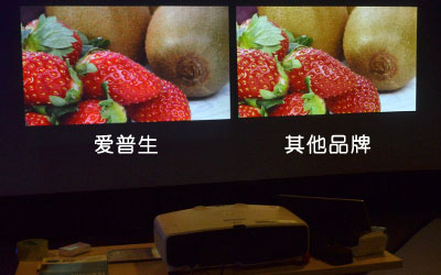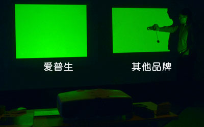 "由于顯示技術上的先進性,愛普生3LCD投影機能夠徹底的避免彩虹效應的產生,讓投影畫面更加的日然與舒適,即使長時間觀看,也不會出現任何的不適情況,讓觀眾的眼睛得到更多的保護。使用我們手中的手機照相機對準投影畫面拍攝時檢驗彩虹效應最為簡便的方法,其他品牌的產品由于技術原因會形成明顯的彩虹效應,對于色彩的表現與眼睛的保護都有一定的影響,并且不適合長時間觀看。" |