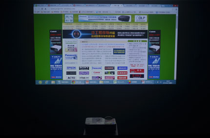 復雜的光路設計要求投影屏幕要足夠平整,稍有凹凸就會出現曲形失真;第二,畫面尺寸不易過大,理論尺寸以80-140為最佳;第三,出于效果考慮,應采取必要的遮光措施。通過右側的實拍樣圖可以看出,M352WS+