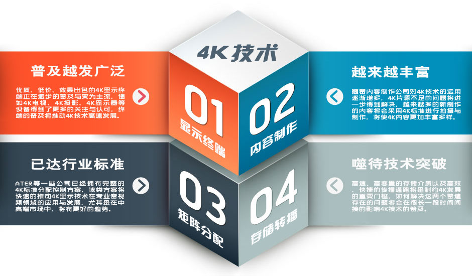 信號源方面,國內(nèi)首部4K電影《歸來》、即將通過4K錄制的世界杯決賽及相關(guān)紀(jì)錄片,都在不間斷地提醒著我們與4K之間的距離。對于4K超高清而言,國外也不斷推出許多4K超高清相關(guān)的流媒體服務(wù),例如NanoFlix