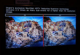 擁有“液晶之父”的夏普近年來一直在LCD液晶技術的制造、研發方面投入了很多精力,其中Quattron四色技術是夏普近年來一個創新點,過去大家都用紅、綠、藍三個子像素來填充一個完整的像素,而夏普Quattron則在其基礎上增加了黃色,用四個子像素來填充一個像素,這樣不但讓屏幕變得更加細膩,而且大大增加了色彩顯示的數量,提升了飽和度和色彩過度均勻性。Quattron+技術在分辨率方面與普通1080p全高清產品完全一致,均為1920×1080,不過其子像素點要比普通1080p電視高出2.5倍左右,就是說Quattron+技術的電視每一個像素點清晰度與精確度都要更高,從而提升屏幕整體的清晰度,并且能夠支持4K超高清視頻的播放。 |