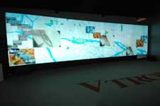 | 一個長度超過10米的半球型投影拼接顯示設備非常引人注目,其采用4臺投影機正投畫面,適合專業培訓演示 |
