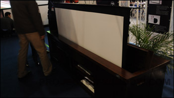 ELITE應(yīng)用于家庭影院的內(nèi)藏式電動(dòng)可升降投影屏幕同時(shí)亮相,吸引觀眾的目光。