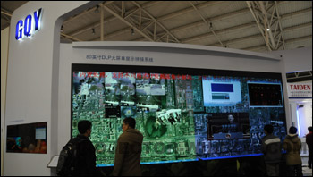 X 2)等。其展示的80英寸DLP大屏幕顯示拼接系統(tǒng)采用80英寸黑色玻璃屏幕以及智能雙燈光學(xué)引擎,內(nèi)含IPAL內(nèi)置圖像處理器。配合功能強(qiáng)大的IPW6800S圖像處理器,在支持原大屏幕系統(tǒng)所有功能的同時(shí),萬能解碼功能還具有支持不同格式IP視頻流和流媒體信號(hào)的輸入。整個(gè)系統(tǒng)可提供豐富的組合顯示方式。
