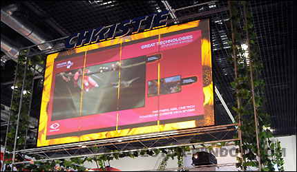 本屆展會最引入注目的是科視展位由70塊創新的全數字顯示幕墻科視MicroTiles組成的Christie公司標識。這一展示在表現Christie