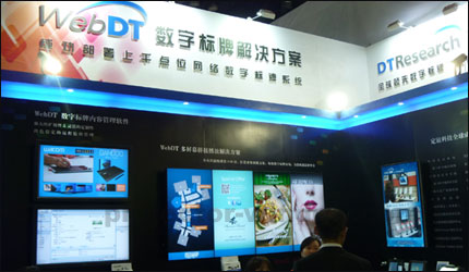 本屆展會數字標牌軟硬件整合制造商定誼科技展出了WebDT多屏幕拼接播放解決方案,此外還有多款數字標牌播放器、觸動感應式數字標牌系統、手持式移動數據終端等產品。WebDT多屏幕拼接播放系統是本次展出的重點,專為超大電子信息看板及視頻墻所涉及。 |
