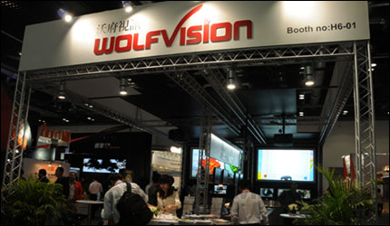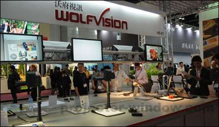在本次展會上WolfVision沃府視訊展示了旗下臺式展臺和懸掛展臺系列產品。其中第三代VZ-8展示臺產品VZ-8plus3和VZ-8light3,其具有的1280x960象素和每秒30幅影像的高分辨率CCD攝像機,可以創造精致優秀的畫面,令人印象深刻。另外一款高端展示臺VZ-9plus配備以太網/局域網接口、擴展了的網絡功能、LCD監視器、數碼縮放器、觀看角度可變的一步設置、sRGB色彩精度以及眾多高端功能。 |