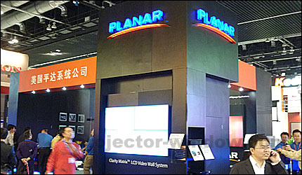 大屏拼接成為展會絕對的顯示主題,并呈現技術多元化。DLP拼接墻由于LED光源技術的采用,煥發新的市場競爭力,Mitsubishi(展會同期舉辦的發布會)、Vtron威創視訊、Christie、巨洋、GQY都為我們展現了最新的LED光源DLP拼接墻以及高清拼墻產品;平板拼接隨著拼縫技術的飛速發展,繼續擴大市場的應用和影響,窄邊拼接、無縫拼接成為大屏市場的熱門話題。三星的5.5mm、LG的6.3mm、Sharp的6.5mm液晶拼接墻作為展會上液晶拼接的代表,吸引了眾多關注;而德浩展示的薄至4mm/2mm/1mm的等離子拼接,進一步詮釋著無縫的概念。