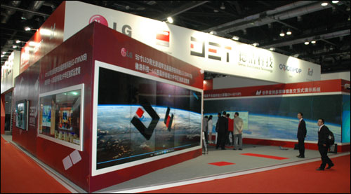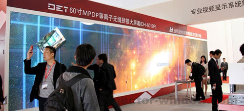 在德浩等離子展區,有專業的等離子拼接展示的系統解決方案:60吋PDP等離子(DH-6010P)無縫拼接大屏幕+ICT世界首創多媒體信息交互式演示系統、42吋MPDP等離子無縫拼接大屏幕(OPM-4260)+ICT世界首創多媒體信息交互式演示系統。