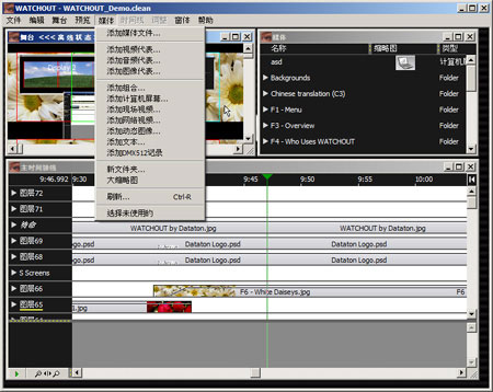 Flash跨平臺和以瀏覽器為基礎的應用軟件互動的功能。用戶可在3D空間里任意擺放,旋轉和移動所有媒體對象。WATCHOUT能理解各種設備信號和外置系統,