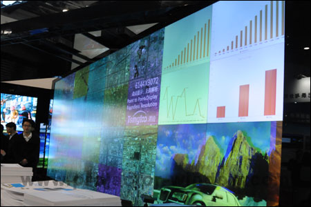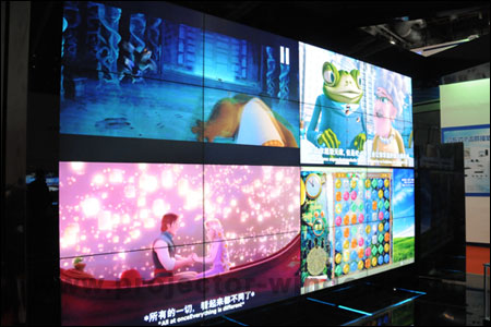 55寸LCD拼接大屏幕顯示系統(tǒng),展示高清畫面,畫面顯示效果非常出色;4X8 50寸DLP背投箱體拼接顯示系統(tǒng);以及三通道正投拼接融合系統(tǒng)。此次展會清投將正式推出TNet2.0物聯(lián)網(wǎng)拼接系統(tǒng),新的系統(tǒng)在原有1.0基礎(chǔ)上新增了5款App硬件應用,是App商務(wù)體感、App信息上屏決策、App一云三端智能回顯、App高清底圖、App