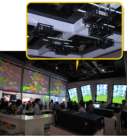 DP展位被一圈投影所包圍,這些投影共8幅,分別由亮度高達20000流明的TITAN SUPER