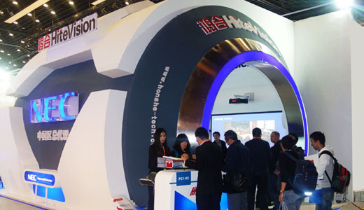 China展會業界反應空前熱烈,吸引了來自35個國家和地區超過400家公司前來參展,匯聚了最前端的視聽以及信息通信科技。鴻合科技以代理品牌NEC高端工程投影全系列產品,自主創新鴻合HiteVision激光超寬屏投影系列產品,以及作為鴻合科技旗下北京鴻合電子工程技術有限公司(HVS)智能視聽系列解決方案的展示陣容,贏得了現場眾多業內人士與最終用戶的關注與好評。
