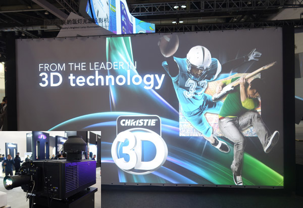 該展區的亮點是行業最亮的燈泡發光投影機:科視Christie
