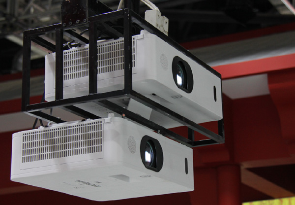 通過使用兩臺5000lm投影機的疊加,實現(xiàn)更高亮度投影。以低成本適用解決方案。