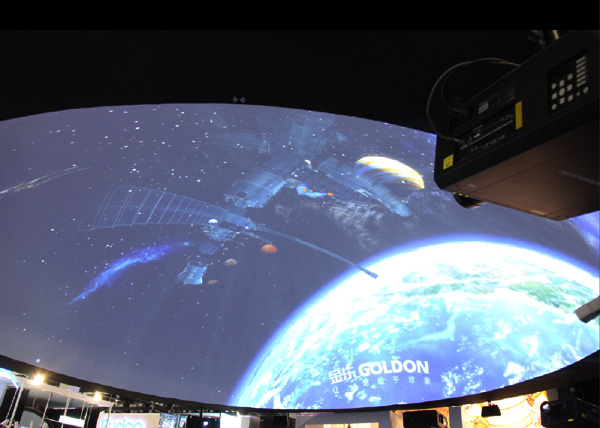 該展項采用4臺松下激光投影機PT-SRZ12KC實現精美絕倫的沉浸式動態弧幕,用先進的投影技術打造身臨其境的視覺效果,帶您領略變幻的星空,探索深邃的海洋。PT-SRZ12KC投影機12,000流明的高亮度和20,000:1的高對比度呈現銳利清晰畫質;真實運動圖像處理器實現120Hz*1的刷新率,使影像效果更加流暢、平滑。
