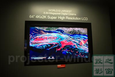 在“2007年國際消費電子展(2007 International CES)”上,夏普設(shè)立專門演示室,展示了一款64英寸的4Kx2K的超高精細(xì)液晶屏,具有相當(dāng)于純高清(1920×1080像素)4倍的像素數(shù),畫面細(xì)致程度令人驚嘆。將為醫(yī)療、地理勘探等特殊商業(yè)用途提供解決方案。