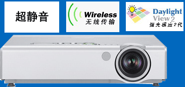 測試中,UX80NT的運行噪音比較低,在標準燈泡模式下,運行噪音與一臺筆記本電腦相仿。與其他產品相比,UX80NT上面板設置非常簡潔,只有電源、信號源選擇、自動設置三個按鍵,而將菜單控制鍵放在后面板,這樣方便用戶在機身后面的操作。在UX80NT和以下介紹的松下PT-UX70中,都有一個很特別的開機畫面,顯示了IBM、惠普、松下、東芝、索尼、富士通、蘋果等10多種筆記本電腦的“外接顯示切換鍵”。