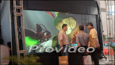 創(chuàng)視數(shù)碼此次展出的是一塊六平米的P10室內(nèi)用LED屏。可極大提高系統(tǒng)的穩(wěn)定性、可靠性;沒有拼接縫;使用壽命長:10萬小時;作為大面積顯示媒體的性價比高,視覺震撼力強;亮度高。