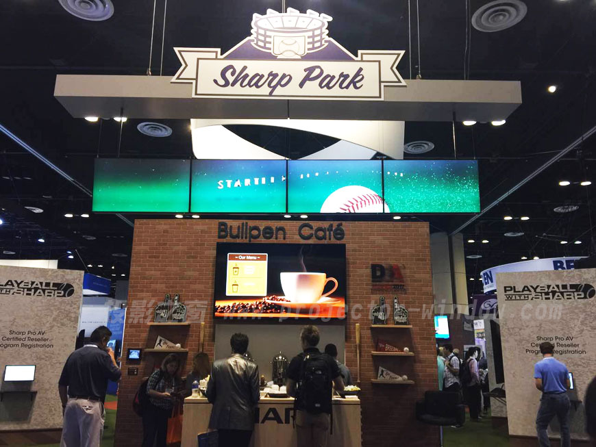 此次盛會中,夏普展示了多款液晶顯示產品,以其獨特的展示造型與出眾的色彩顯示,呈現出絢爛多彩的視覺盛宴,內容包含了體育、商業等多元素方案。