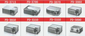 PD-X系列的六款產品分別為:PD-X713、PD-X700、PD-X670、PD-X660、PD-X650、PD-X550。產品亮度在3500至2000流明之間,分辨率均為1024x768。
