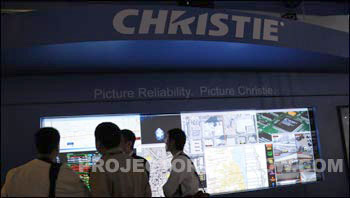 infocommasia2008,科視展出全系列高端視覺解決方案與產品,展臺布置頗具特色,邊緣融合系統投影出Mini版獨特的“碗邊”影像效果。科視控制室產品、立體影像技術、2008年度M系列投影機均有展出。Christie