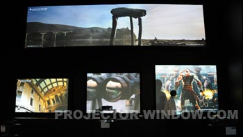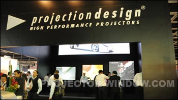 2008展覽會(huì)上,Projectiondesign (挪威PD) 布置了非常專業(yè)的展臺(tái),展臺(tái)正面是一組不同投影畫面組成的顯示墻,顯得氣勢恢宏。PD還展示3DLP芯片投影機(jī)產(chǎn)品以及邊緣融合投影顯示系統(tǒng)。