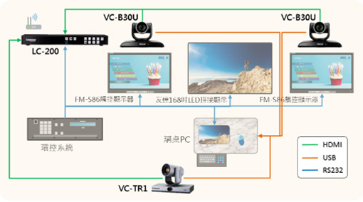 創新: 搭配環控系統可針對不同的使用模式進行燈光、顯示畫面與攝影機切換用戶僅需一鍵切換為不同模式;