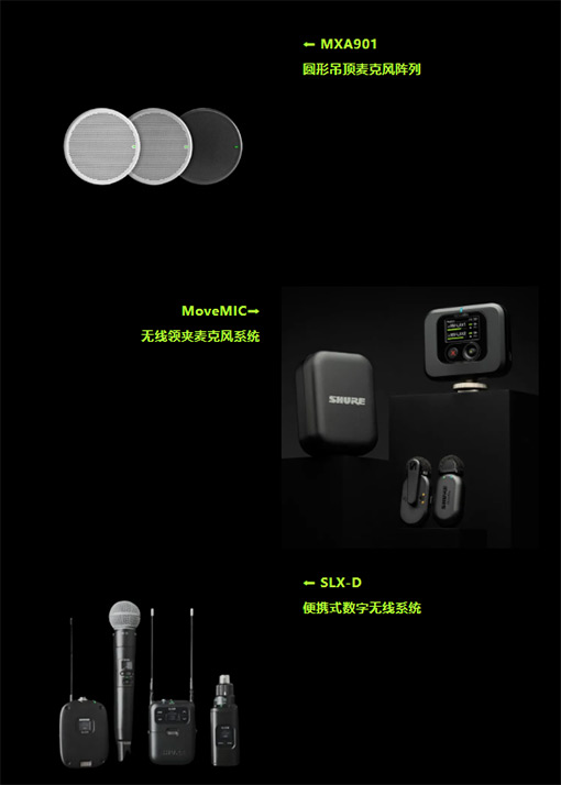 與此同時,也可在展會現場體驗Shure高質量的音頻解決方案以及多款精彩新品,如: