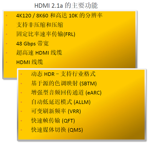 2.1a也支持多種靜態(tài)和動(dòng)態(tài)HDR解決方案。很多游戲或電影、動(dòng)畫(huà)都在內(nèi)容方面導(dǎo)入了4K@120Hz,HDMI技術(shù)也將其導(dǎo)入到HDMI