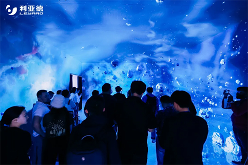 利亞德打造的沉浸式藝術空間,巧妙運用五面屏幕實現畫面聯動,營造出一場夢幻般的沉浸式視覺盛宴。讓參展觀眾有機會身臨其境,親身體驗高清顯示的震撼魅力,一窺顯示技術締造的的奇幻世界。