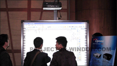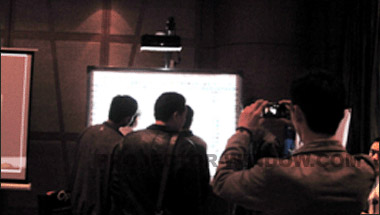 在談到針對教育市場的投影機同時,印天科技也專程為奧圖碼投影機制定了一套短焦+白板的解決方案。該方案由印天紅外超窄交互式電子白板新品L-82和奧圖碼ex610st短焦投影機共同組成。投影機吊臂到電子白板的距離為1米,獨特的比例和角度可以讓教師上課時不再為投影機光束的干擾而頭疼。不少與會者的在會議結束后被這一組合所吸引,紛紛上前了解白板的情況,感受印天軟件的強大功能。