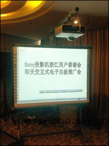 近日,由浙江SONY投影機總代理萬律集團主辦、廈門印天科技協辦的“浙江地區互動教學交流會”在杭州百瑞國際酒店隆重舉行,會上展示了印天紅外電子白板L-82與SONY短焦投影機SX125的教學組合方案,并吸引了浙江地區上百位校長、老師及業內人士參會。
