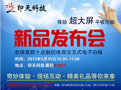 2013年5月10日—12日,第64屆中國教育裝備展示會將在武漢國際博覽中心隆重舉行,本屆展會,廈門印天科技將攜最新研制的全球首款十人同步書寫電容交互式電子白板驚艷亮相。結(jié)合展會“展示、合作、創(chuàng)新、跨越”特色定位,印天科技將帶給您不一樣的精彩紛呈。以新品發(fā)布為主題,展示會期間,印天科技除電容新品驚艷亮相外,其他電磁、紅外、光學(xué)等各系列主打產(chǎn)品也將集體展出。