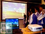 深圳市巨龍科教高技術(shù)股份有限公司在大賽上進行了IPBOARD交互電子白板的展示,向參賽的廣大師生表現(xiàn)了IPBOARD交互電子白板給現(xiàn)代教學(xué)帶來的方便與快捷。興趣盎然的學(xué)生們在交互白板面前排起了長隊,他們運用電子筆代替鼠標,直接在白板上輕松愉快地書寫、繪畫、操作課件……