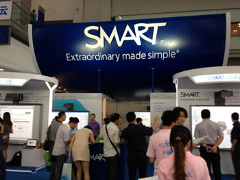 應(yīng)邀參加在深圳會展中心舉辦的“全國中小學(xué)信息技術(shù)教學(xué)應(yīng)用展演”,這次主題為“信息技術(shù)推動中小學(xué)教學(xué)方式的變革與創(chuàng)新—探索、普及、融合”的展演由教育部和廣東省深圳市人民政府主辦,教育部中央電化教育館廣東省教育廳深圳市教育局承辦,旨在與來自全國各地的各級教育部門領(lǐng)導(dǎo)、中小學(xué)校長、教師以及國內(nèi)外知名教育專家圍繞信息技術(shù)如何迎合中小學(xué)教學(xué)信息化的現(xiàn)實需要、發(fā)展方向和未來趨勢進(jìn)行深入討論。SMART展位(SMART