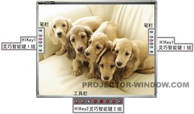 天士博(TRACEBoard)新款產品型號分別為TS6060(60寸)﹑TS6080(80寸)和TS6010(100寸)。天士博(TRACEBoard)推出這款產品,明顯是憑借其獨有的“HIKey技術”在繼續擴大市場優勢——HIKey技術是指位于白板兩側及筆架上的以圖標顯示的
