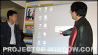)"交互式電子白板還可以借助Internet網絡系統,滿足異地溝通和交流的需要,使分布在世界各地的人員如同在同一房間進行演講、討論一樣,實現多點互動式討論。