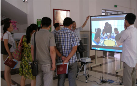 天仕博從技術創新、資源整合到多層級教學應用等方面所做的貢獻,紛紛試用電子白板,與我司專業人員進行互動交流。
