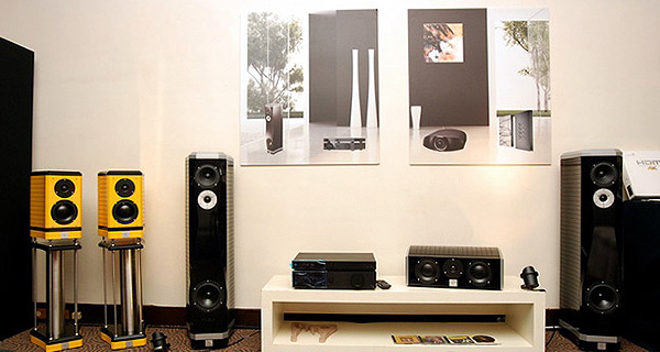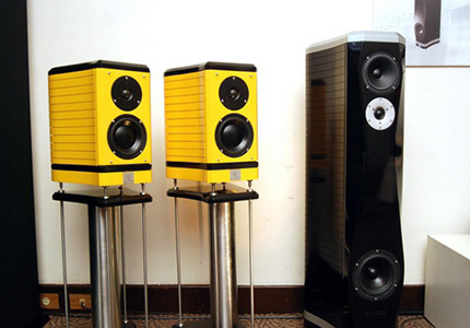 Artcoistic出品的左右聲道與超低音喇叭箱體扁平狹長,體積雖然大,卻并不占空間。除了Artcoistic,晶英國際還展出意大利音響品牌Eventus的產品。該品牌喇叭箱體采用SACC技術,標榜可以消除諧振與駐波來降低音染,讓單體發揮良好的控制力與效率。喇叭外型很有一致性,箱體以高密度EA-HDR板一塊塊榫接出優美的曲線,搭配搶眼的配色,視覺效果一流。現場展出的Artcoistic產品有Phobos落地喇叭、Sophis中央聲道以及鮮黃色箱體的Metis書架喇叭。
