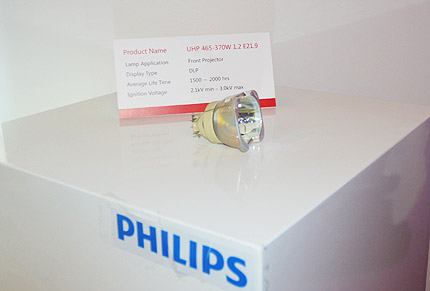 E21.9。此外,飛利浦進行了對比展示,兩臺同樣的投影機,一臺使用的是飛利浦替換燈組,另一臺是非原廠燈,同時投影相同的畫面,可以看到效果是有很大差距,使用飛利浦替換燈組的投影機,亮度表現(xiàn)更加出色,細節(jié)非常充分,投影圖像更為清晰好辨認。