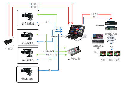 并通過SDI信號傳送給硬盤錄像機進行記錄,以方便日后存儲及非編系統編輯。所有的設備都基于高清標準,SDI信號,AWS-750處理效果為高清1920x1080,滿足點播、直播、存儲、要求,并能與高院直播系統(720P)對接傳輸。